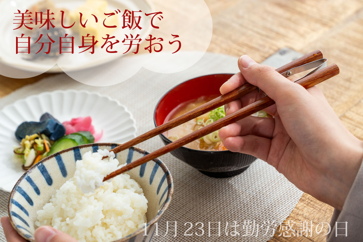 勤労に感謝といわれても具体的に何をするか迷ってしまう方も多いのではないでしょうか。そんな方は普段がんばっている自分へ感謝してみましょう。米どころ新潟としては、新米と一緒に美味しいものをたくさん召し上がっていただくのがオススメです。水分をたくさん含んだ新米は柔らかく粘りがあり、香り高く美味しいお米です。ちょっと贅沢な食卓や外食など美味しいご飯は自分へのご褒美にぴったりです。