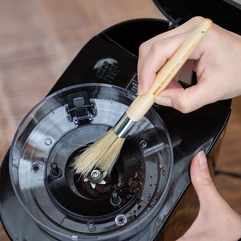 京都のブラシ屋さんに直接オーダーしたスペシャルモデル。コーヒーの味を保つためにも、ミルを長く愛用するためにも大切なコーヒーミルのお手入れに欠かせないミルブラシです。手挽ミルや電動ミルの日常のお手入れにお使いください。長めのブラシは豚毛で程よいコシとしなやかさがあり使いやすく手の届きにくい細かいところに溜まった粉も掃き出すことができます。素材感を楽しめるナチュラルな質感はお手入れの時間すらも楽しくなります。ケア道具までも拘り、充実したコーヒータイムを。※水洗いは可能ですが、食器用洗剤等は使わずに洗浄し、風通しの良い場所で十分に乾燥させてください。なお、水洗い後は特有の臭気がありますが、乾燥後には臭気は薄れます。