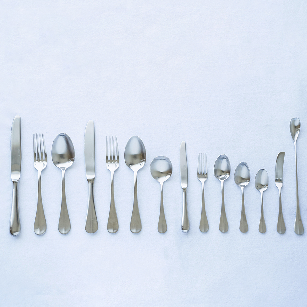 主にホテルなどの業務用として愛されているバゲットクラシックシリーズ。シンプルですっきりとした飽きのこないデザインと、さりげなく計算された使いやすさが特徴的です。柄部のセンターラインがアクセントとなっており、クラシックでエレガントな雰囲気を演出するので、普段使いからおもてなしのシーンまで幅広く活躍すること間違いなしのアイテムです。デザートスプーンは、ゼリーやプリンなどを食べる時はもちろん、女性の手に馴染むサイズ感なので、普段の食事にお使いいただくのもおすすめです。