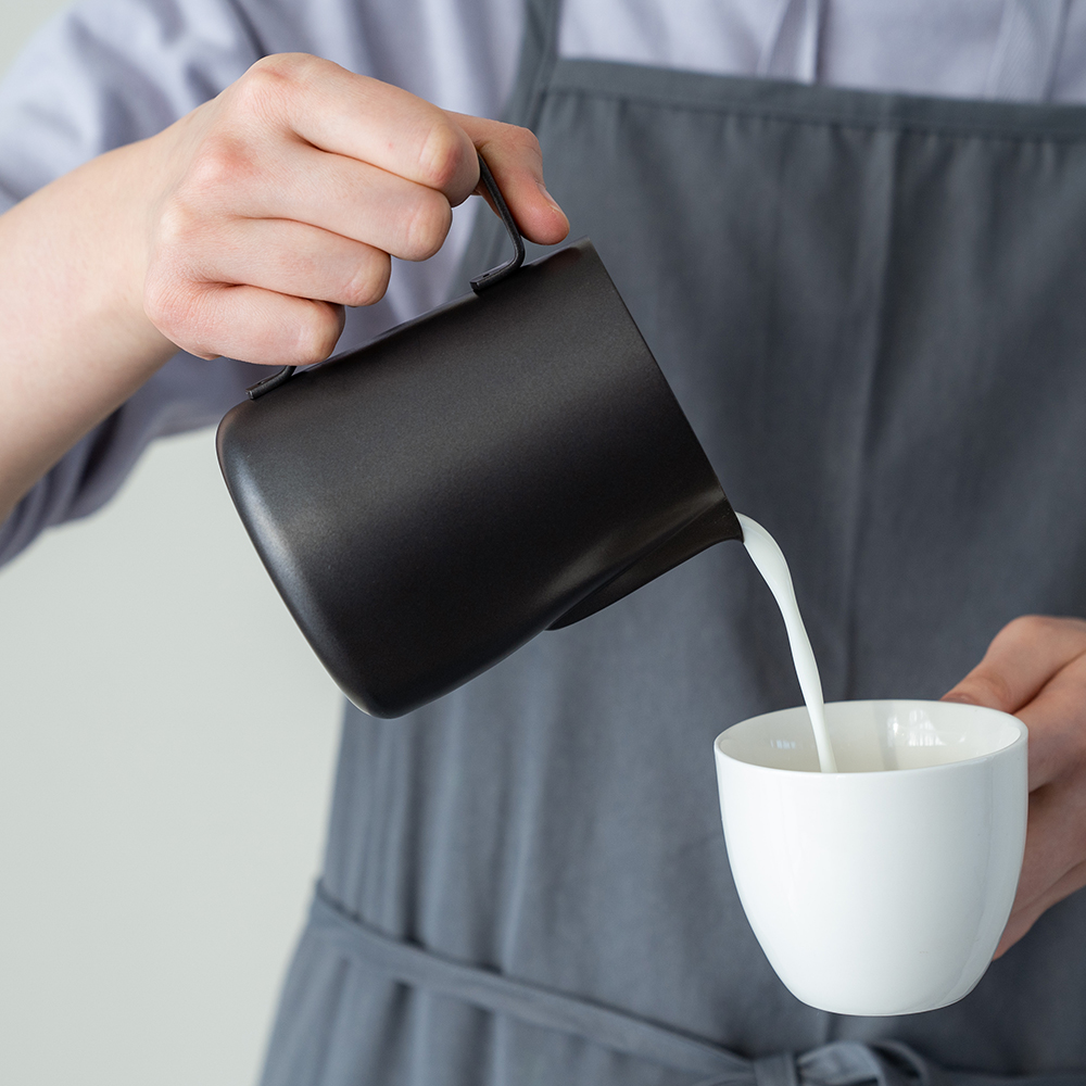 ふわふわのフォームミルクやスチームミルクを作るのに便利なミルクジャグです。細く尖った短い注ぎ口としっかり握り込むことができる大きめハンドルは繊細なアートを描くのにも使いやすくカプチーノやラテアート用としてお使い頂けます。錆びにくく、熱にも強いステンレス製はメンテナンスしやすく長く使えます。シンプルでスタイリッシュなデザインで本格的な道具にこだわりたい方におすすめです。