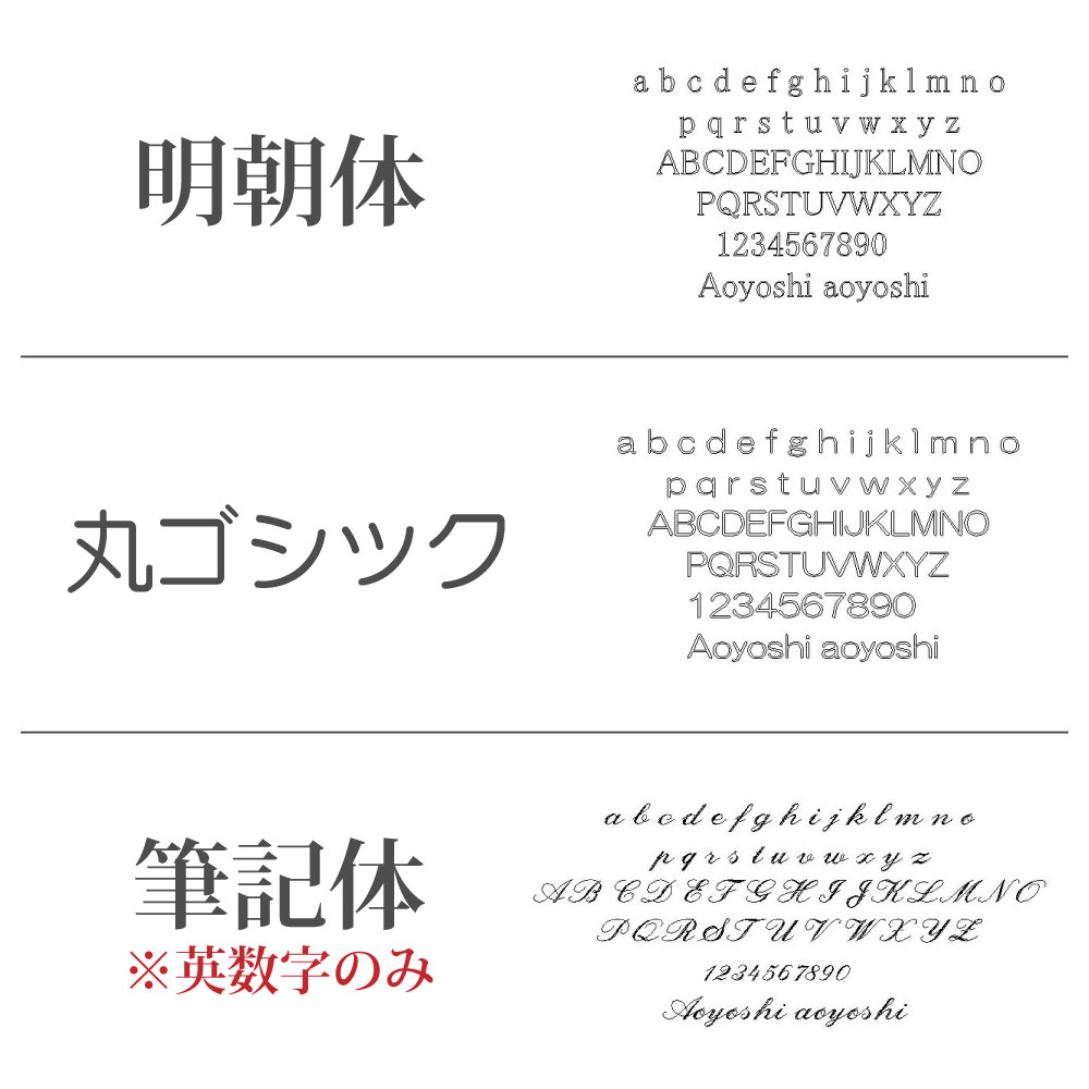筆記体は英数字のみです。ひらがななど英数字以外をご入力いただいた場合「明朝体」にて刻印いたします。