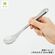 一般的なカレースプーンの一口量は約25gに対しライトスプーンM(No.201)は16~18gに設定。スプーン部分の板厚は薄いため口当たりもよくなっています。ヘッドは丸めでお玉のようにすくえてすくいやすく、小さくデザインされているので、口の小さな人や口が開けにくい人でも、食べ物を口の中に取り込みやすいよう設計されています。また、手首を曲げにくい方におすすめの左曲がり、右曲がりタイプ。ヘッド部分の傾きは、口と手の運動メカニズムの分析から割り出された60度に設計されています。